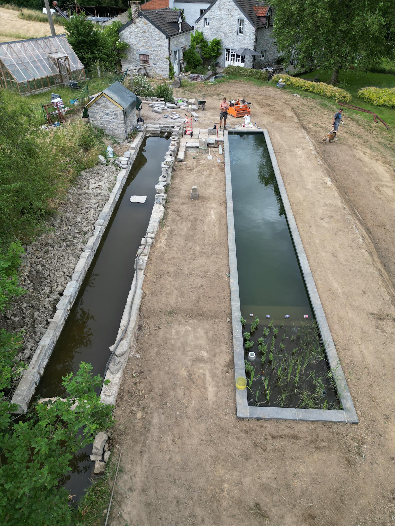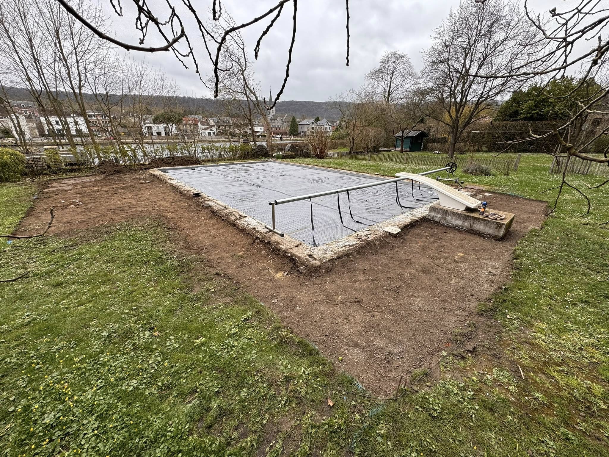 Plusieurs indices permettent de suspecter une nappe phréatique haute : présence d’eau dans le sous-sol lors de fortes pluies, jardin qui reste humide longtemps après les précipitations, ou localisation en fond de vallée (bords de Meuse, Sambre, fonds de vallons namurois). TerraLenoir évalue ce risque lors de la visite gratuite. Si nécessaire, un sondage préalable peut être réalisé pour vérifier la profondeur de la nappe avant de chiffrer le projet.Quelle différence entre le terrassement d’une coque et d’une piscine béton ?