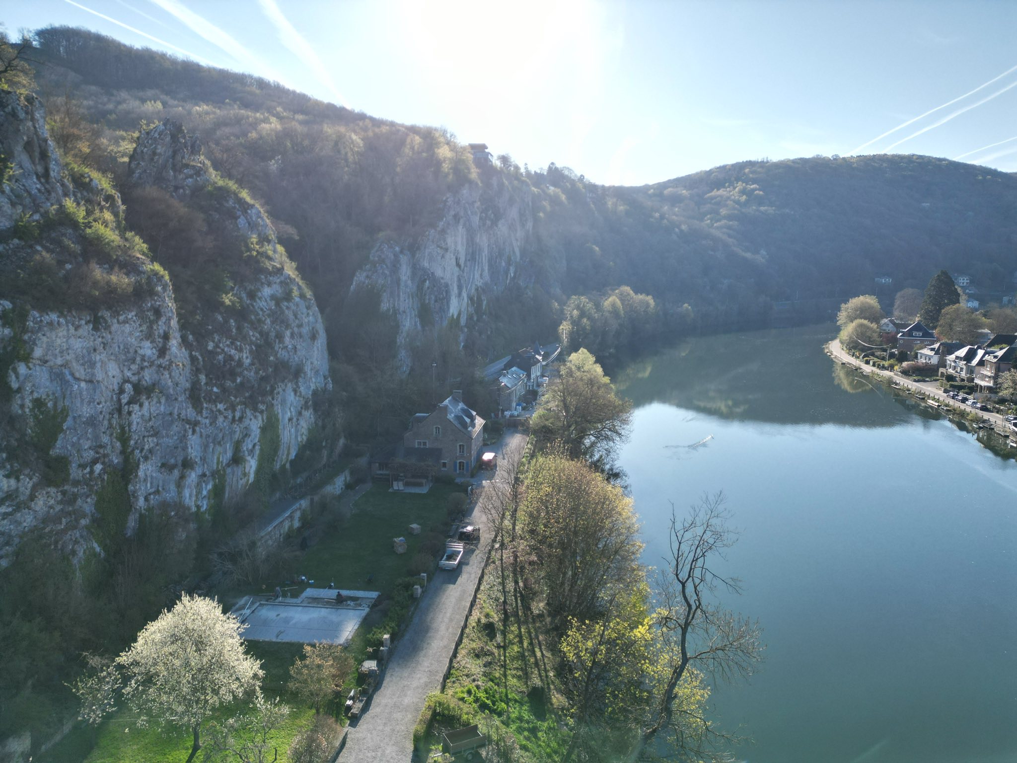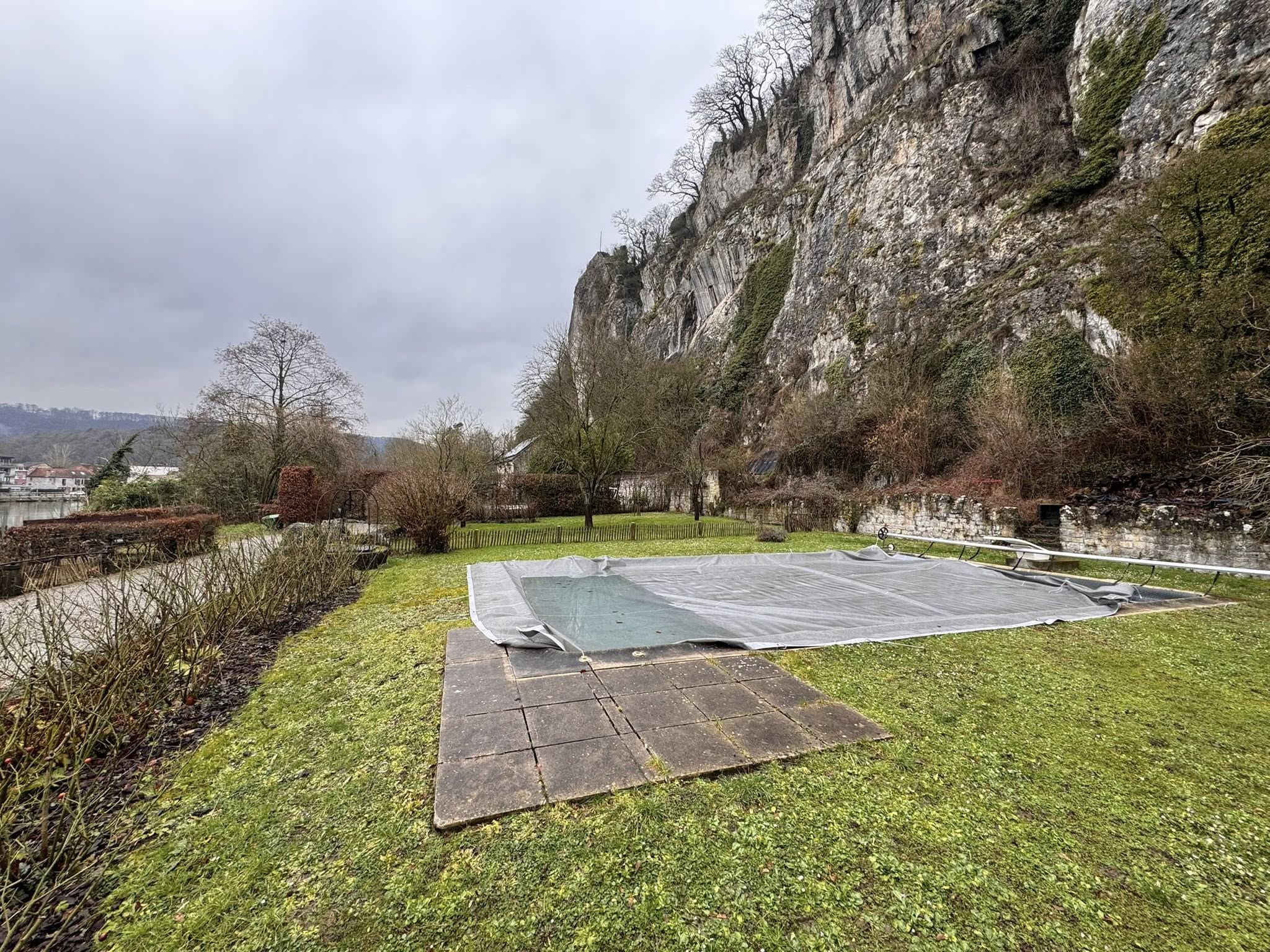 Courant le long de la Meuse. Mur de soutènement possible. Analyse préalable recommandée.Sol rocheux