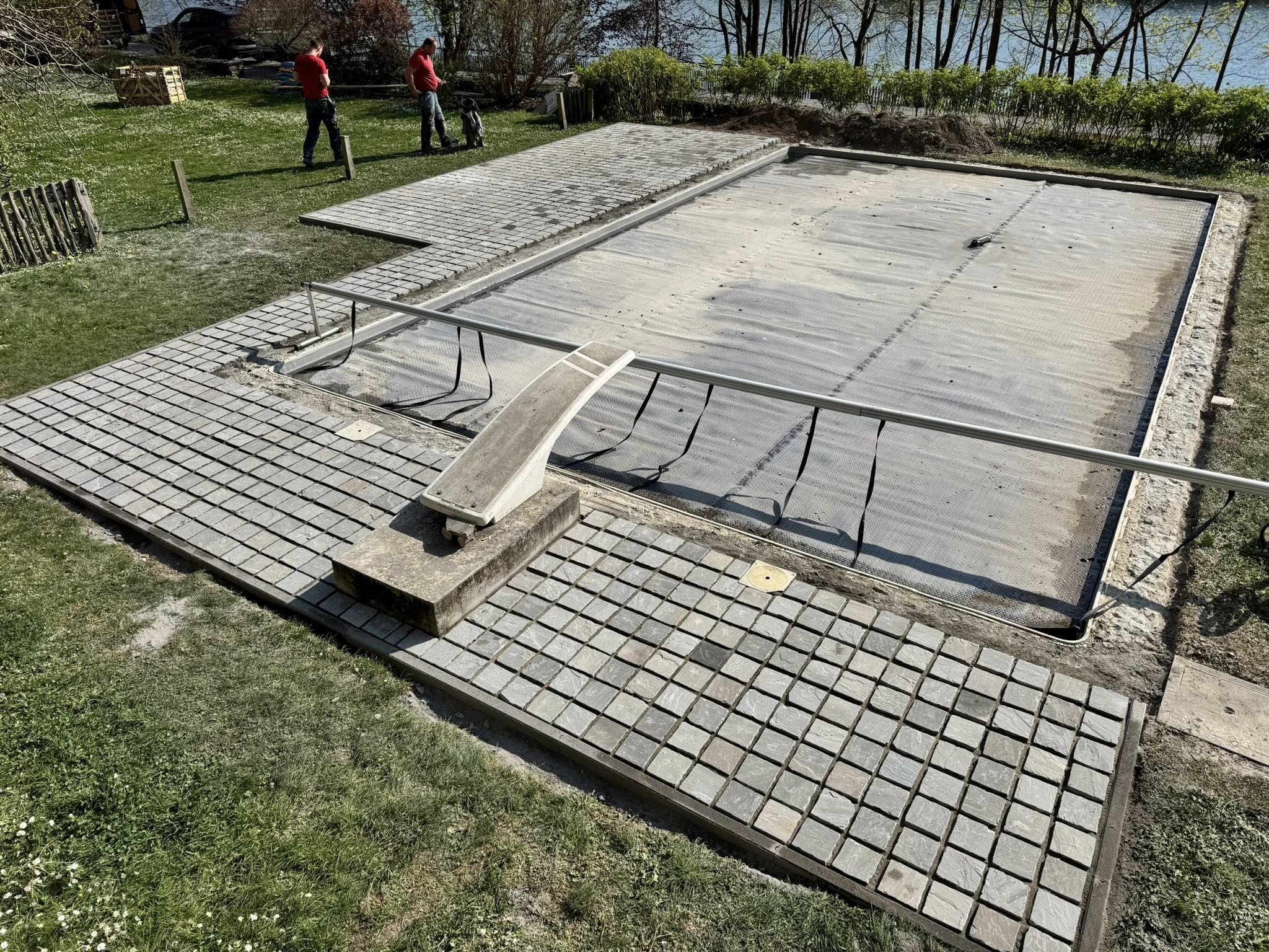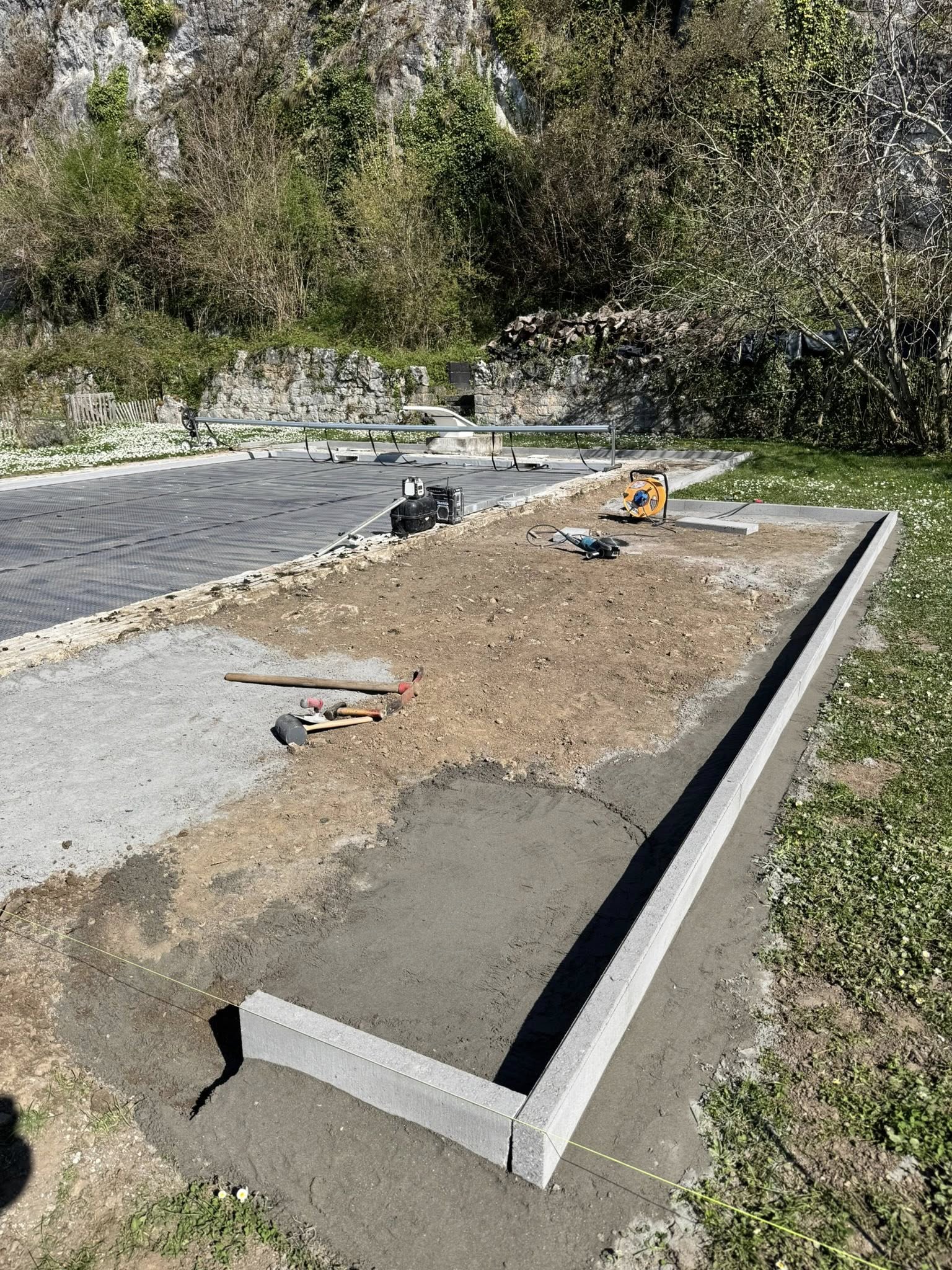 TerraLenoir enchaîne directement sur la plage en béton lissé après l’installation. Pas de délai entre les entreprises, pas de coordination à gérer.Gestion proactive de la nappe
